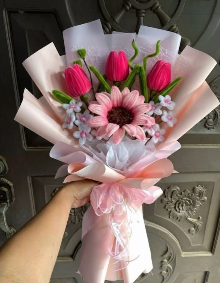 Shimmery pipe cleaner daisies that catch the light beautifully.