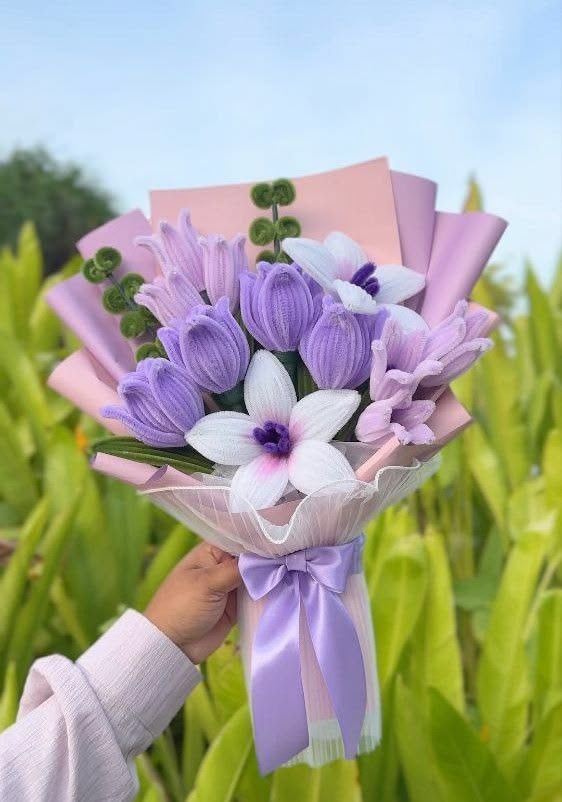 Hand-bent lavender stems that add a pop of color to your desk without the mess.
